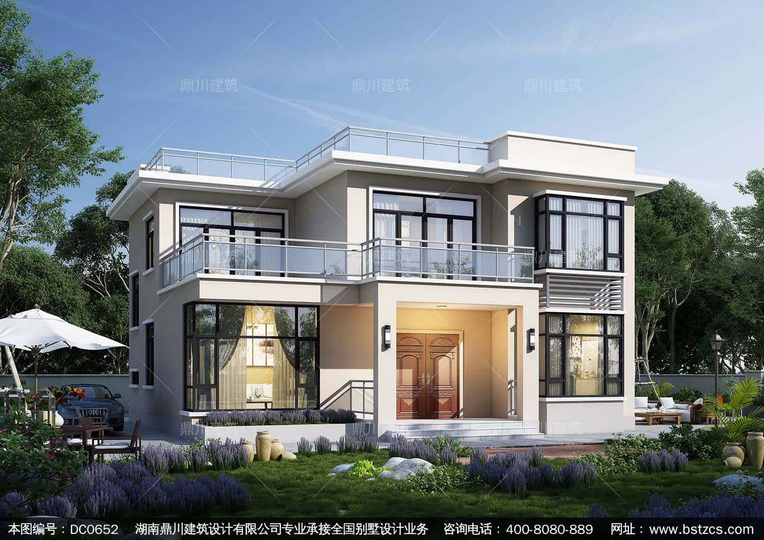 二層現代風格平頂自建房屋設計圖紙及效果圖_農村兩層帶露臺小別墅設計圖紙,鼎川建筑