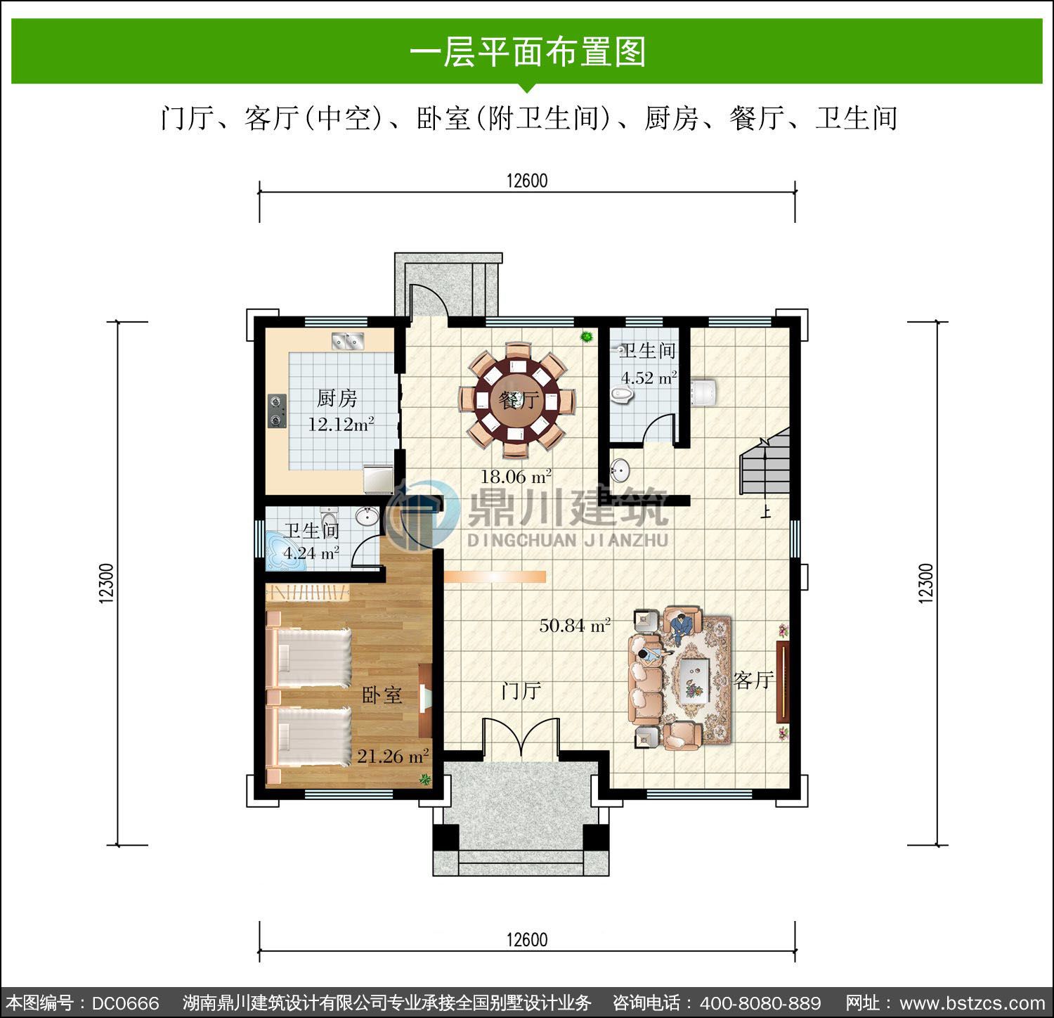 | 一 層: | 門廳、客廳(中空)、臥室(附衛生間)、廚房、餐廳、衛生間 | |||