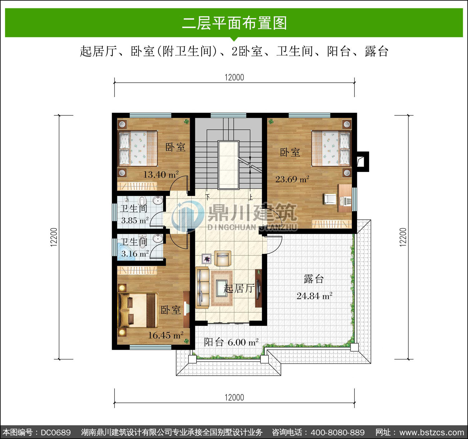 | 二 層: | 起居廳、臥室(附衛生間)、2臥室、衛生間、陽臺、露臺 | |||