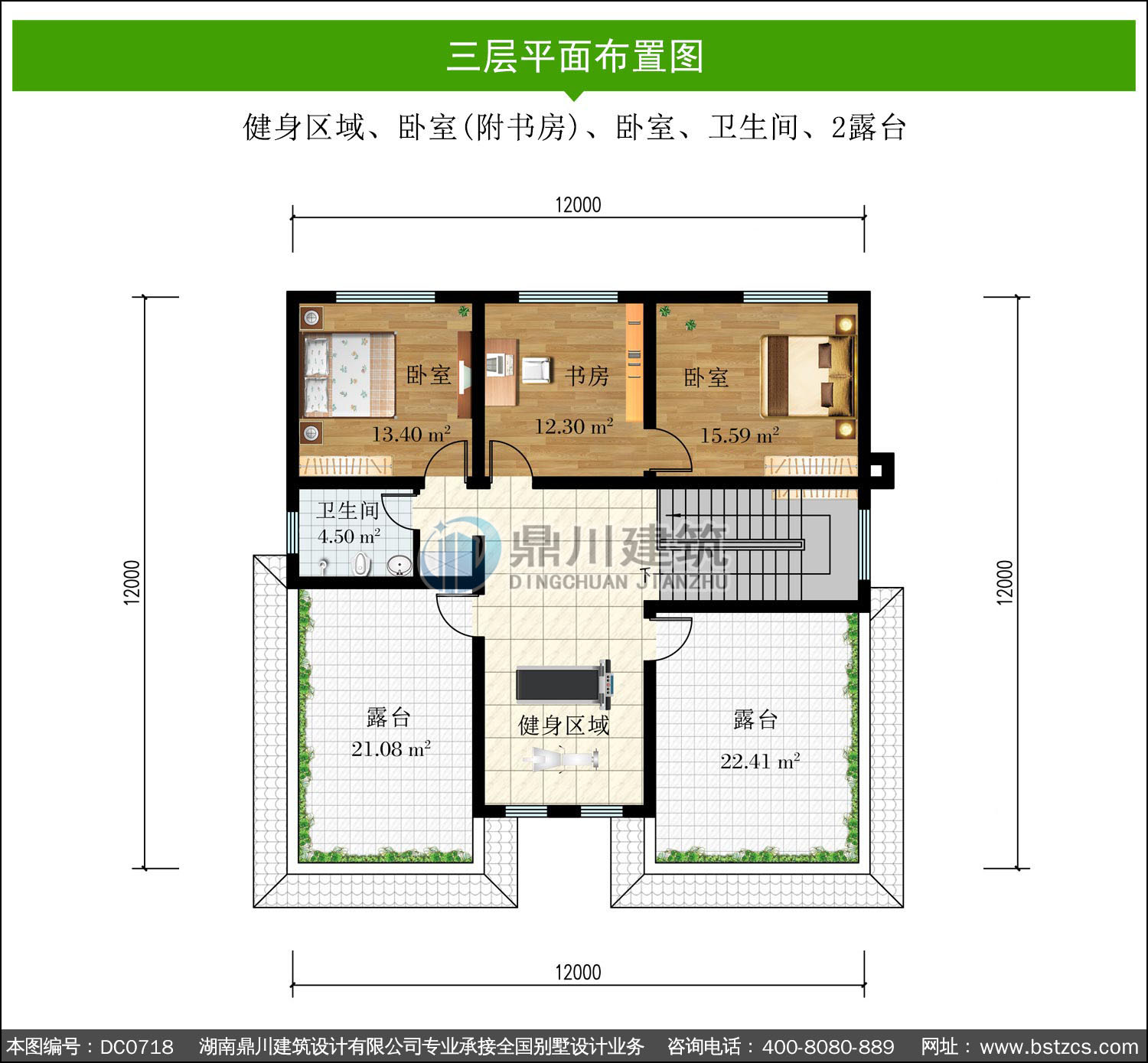 | 三 層: | 健身區域、臥室(附書房)、臥室、衛生間、2露臺 | |||