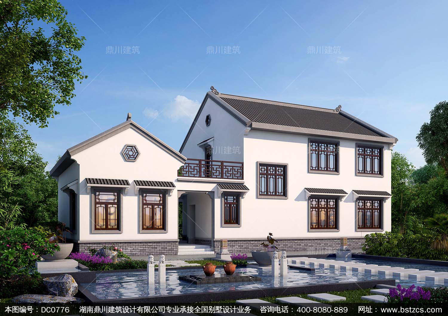 中式二層帶露臺自建房施工圖紙及效果圖_農(nóng)村別墅設(shè)計,鼎川建筑