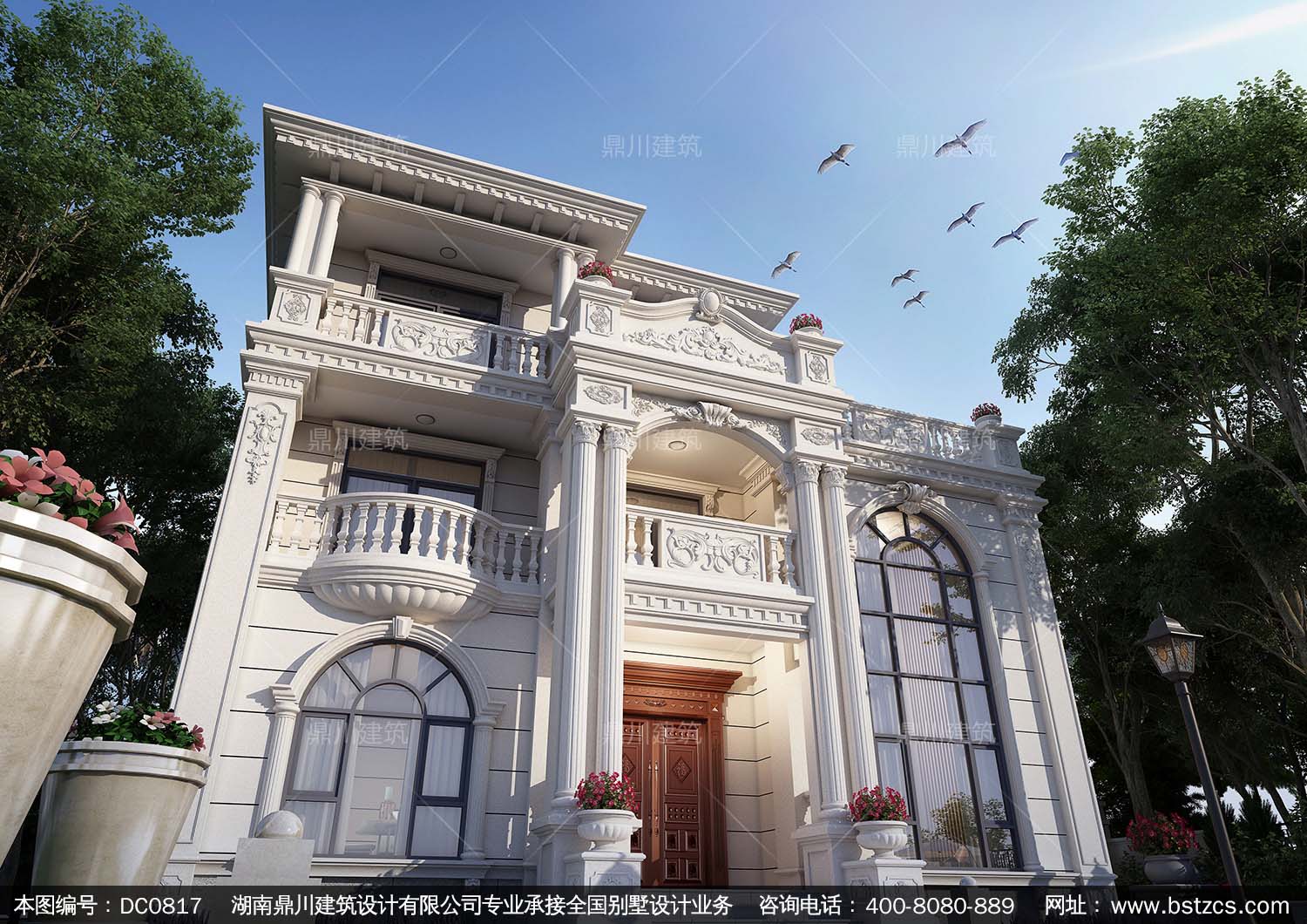 大氣歐式三層帶旋轉(zhuǎn)樓梯別墅施工圖紙及效果圖_新農(nóng)村自建別墅,鼎川建筑