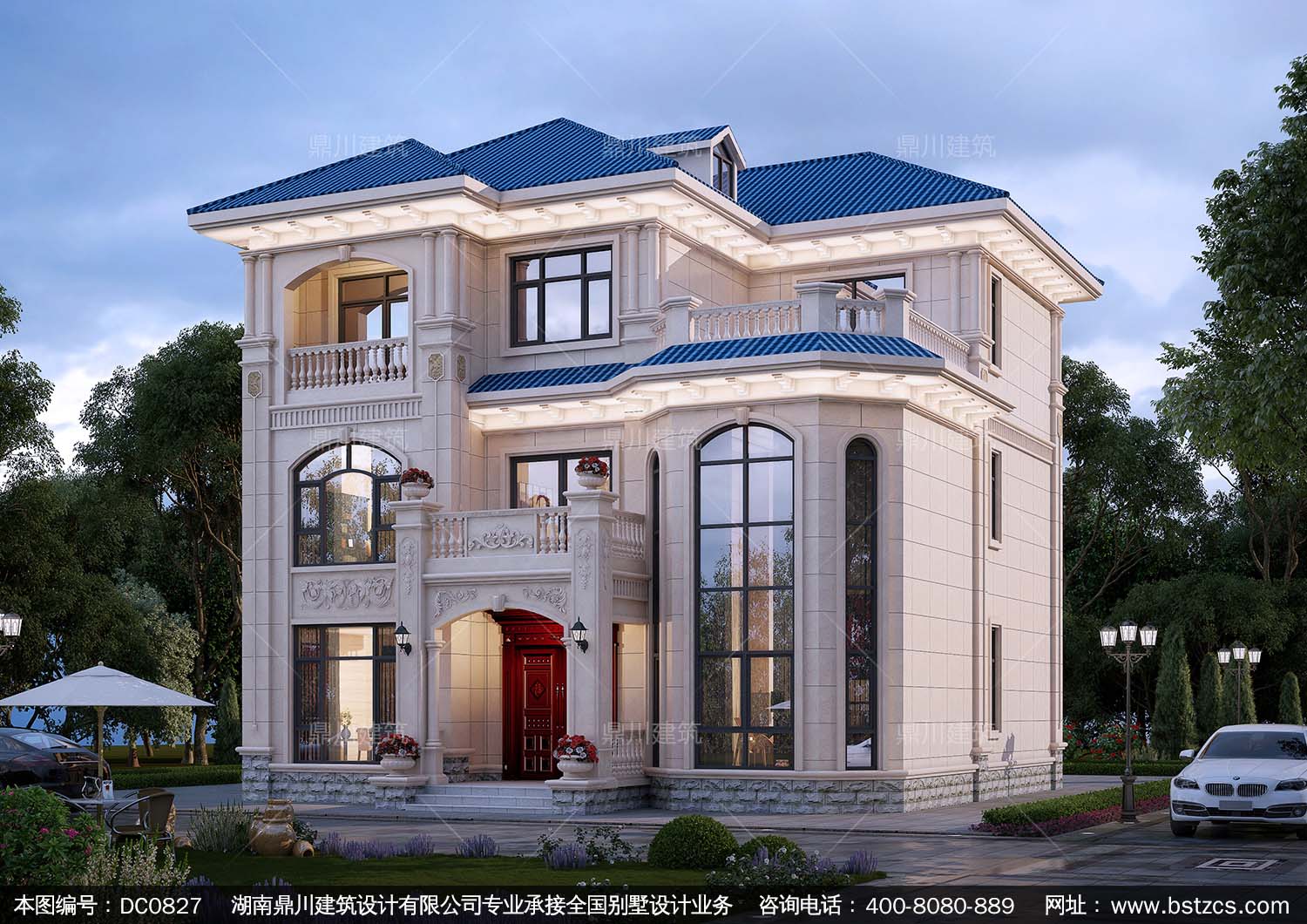 歐式三層帶露臺復式別墅施工圖紙及效果圖_新農村自建房屋設計,鼎川建筑