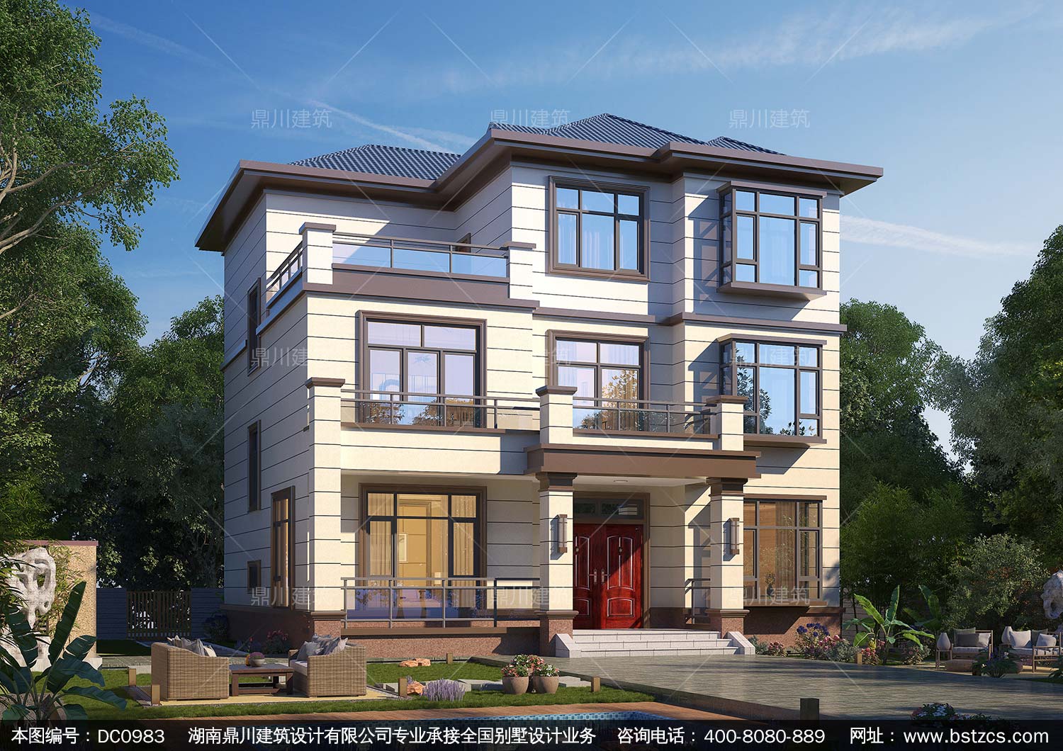 三層新中式帶露臺別墅圖紙及外觀效果圖_農(nóng)村自建房設(shè)計(jì),鼎川建筑