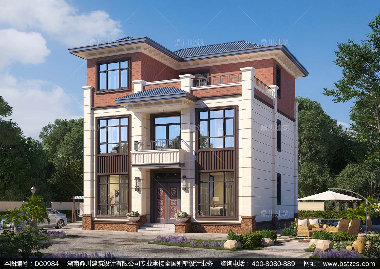 新中式三層帶露臺別墅全套圖紙及效果圖_農(nóng)村自建別墅設(shè)計,鼎川建筑