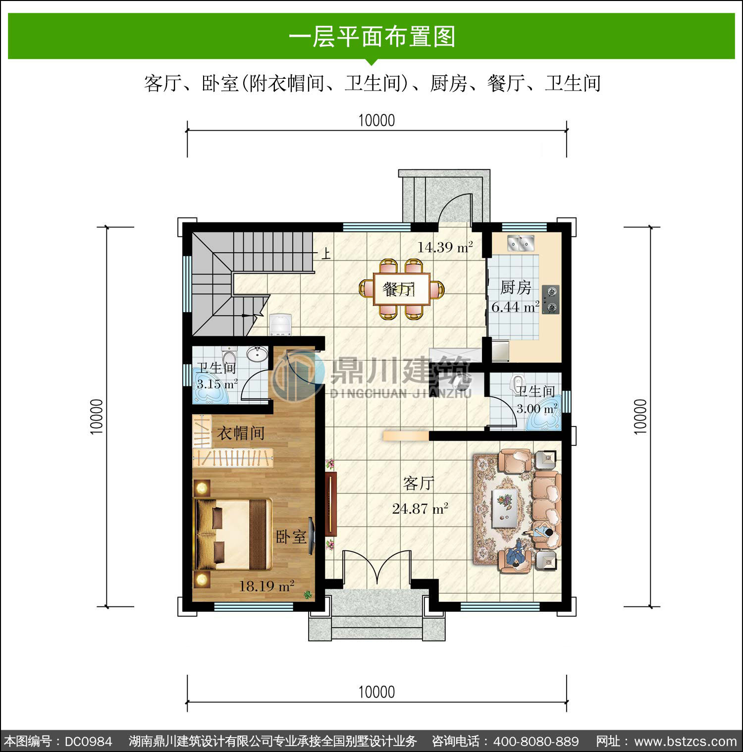 | 一 層: | 客廳、臥室(附衣帽間、衛(wèi)生間)、廚房、餐廳、衛(wèi)生間 | |||